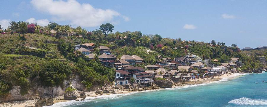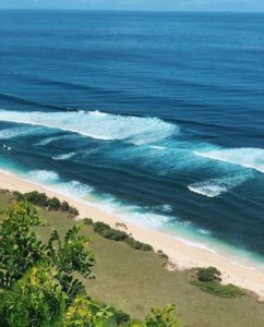 This is our favorite and closest located 800 meters from Canang Villas Bingin, it can be reached by a 10-minute walk or 2-minute scooter ride to the top of the enchanting stairs that lead to the gem below. Once there you’ll find it hard to leave with it’s laid back vibe. It’s an afternoon well spent and best at low tide for swimming in rock pools (The Aqua Life is the best option to go for swimming lessons) and walking either way to Dreamland or towards Padang Padang to find your own little piece of paradise. Or simply just lay the sarong down at Kelly’s Warung while watching the sunset and the waves reel down the reef. Also recommended is the fresh seafood barbeque held nightly on the beach where you can pick the days catch and have grilled while you sink your toes into the sand.